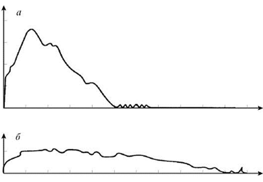 Один из важных этапов обследования пациентов с заболеваниями предстательной железы - оценка уровня ПСА в сыворотке крови. Она позволяет выявить латентно протекающий рак предстательной железы, а также определить преобладание эпителиальной или фиброзной ткани в органе при ДГПЖ. При оценке акта мочеиспускания выполняют урофлоуметрию . При инфравезикальной обструкции, обусловленной ДГПЖ, снижается максимальная и средняя скорость потока мочи и увеличивается продолжительность акта мочеиспускания, а урофлоуметрическая кривая становится пологой и более протяженной (рис. 2). При выполнении урофлоуметрии больной мочится в специальный резервуар, и с помощью специального приспособления осуществляется запись акта мочеиспускания. Для оценки урофлоуметрической кривой наиболее часто используют показатель максимальной скорости потока мочи. Его значения более 15 мл/с считаются нормальными. Показатель максимальной скорости потока мочи 10-15 мл/с свидетельствует о легкой степени, 5-10 мл/с - о средней степени, а менее 5 мл/с - о тяжелой степени нарушения мочеиспускания.